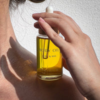 Nourishing natural oil blend of Jojoba Oil, Argan Oil, Camellia Oil, Rosehip Oil and Calendula Oil to provide long-lasting hydration and sun-kissed glow. The silky textured body oil will leave skin smooth, firm and moisturised. With notes of Chamomile, Geranium and Patchouli, the Retreat Body Oil is gently fragranced with our signature scent made with 100% organic essential oils.